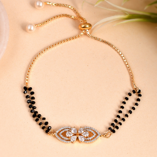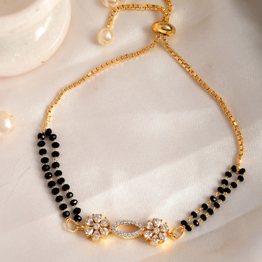 Shoshaa presents a beautiful handcrafted gold plated mangalsutra wraparound bracelete in gold & black designed...