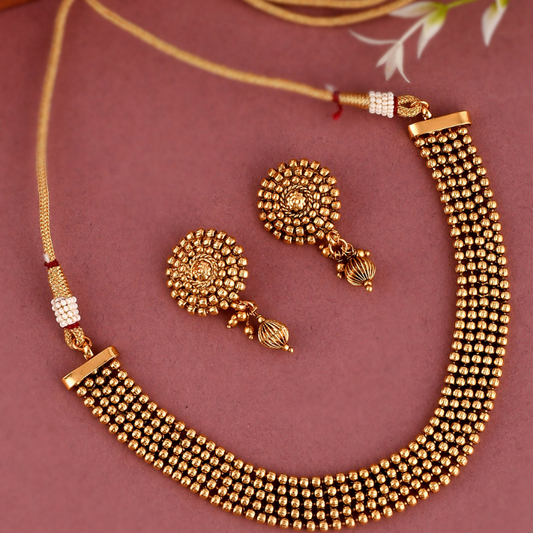Shoshaa presents a beautiful handcrafted gold plated necklace with pair of matching earrings. Adorn yourself...