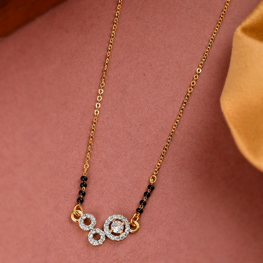 Shoshaa presents a beautiful handcrafted gold plated Mangalsutra embellished with CZ stones & black beads...